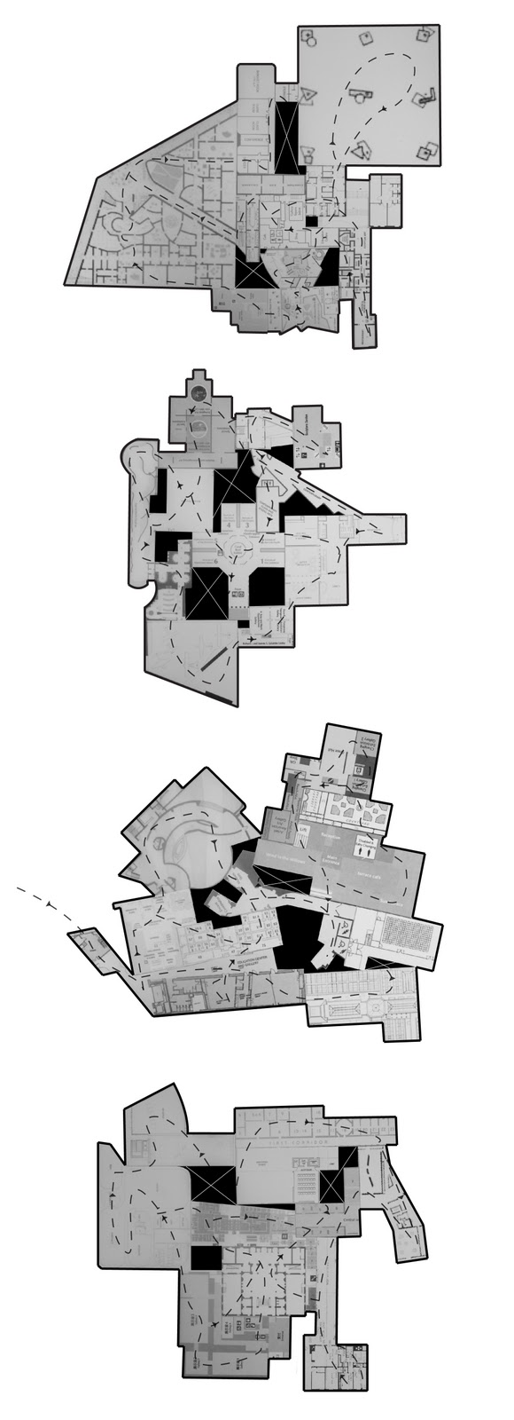 This started by collecting 100 museum plans from the exciting to the mundane, selecting spaces that had dynamic paths produced by their architecture and splitting them up into large, medium and small spaces to accommodate the different types of program.